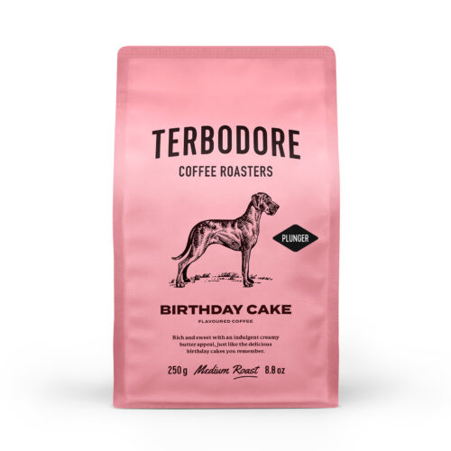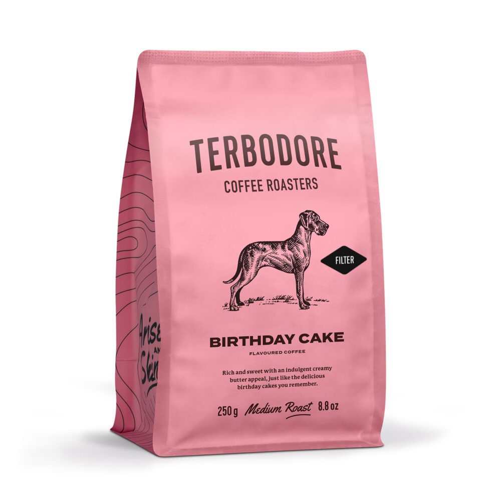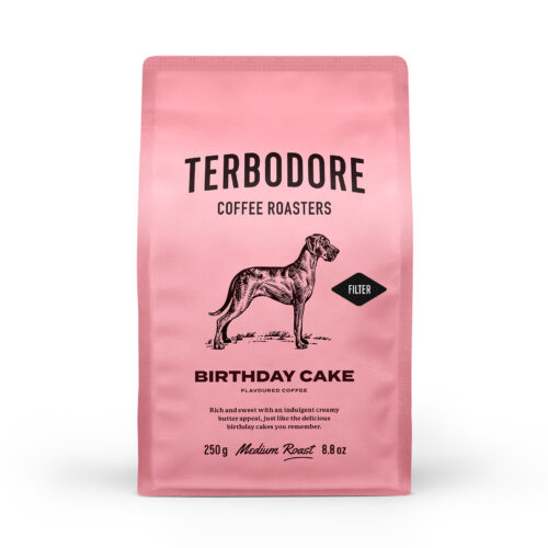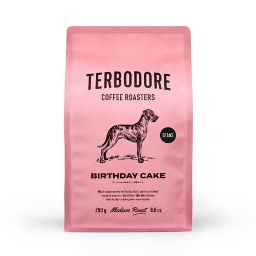 Indulge in the flavour of celebration — enjoy the comforting sweetness of Terbodore Birthday Cake Coffee today.